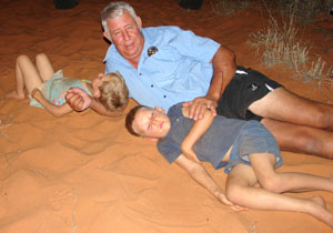 Before Christmas we went for a "braai" (barbecue) on a dune to celebrate our sister's birthday. They live in the city and it was her wish to spent it this way. We only took food with us. The children played in the red sand till late and fell asleep near their grandfather Hendrik (see picture).
