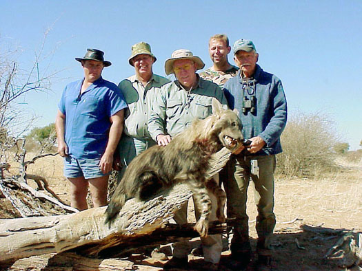 From time to time the radio barks. Its all Afrikaans, but everyone knows whats going on. The trucks are going the same direction now, following the loping hyena. In, out and around clumps of bush. The objective is to kill it before it can escpae through the border fence into Botswana. The rat patrol was maneuvering to herd the hyena into position for Buz to shoot.
